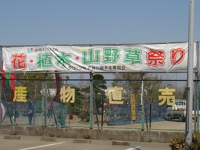 | 花植木祭り開催中(埼玉ひびきの農協かみかわ直売所)。4月12日から5月6日まで毎日販売しています。 |