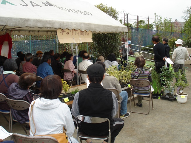 | 花植木祭りの間に、剪定の講習会(上)、寄せ植え講習会(中)、最終日の大処分せり市(下)を開催しました。 大勢の方が来場されました。ありがとうございました。 |