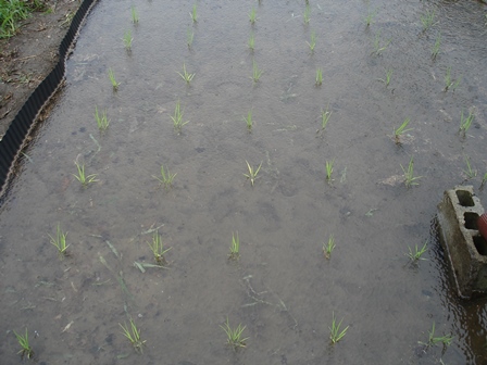 | 正月用のしめ縄作りのため、藁を作る目的で、すごく小さな水田でイネを育てています。 青刈りし、よく乾燥させ保存し、暮れにしめ縄を作ります。 直売所でも販売します。 |
